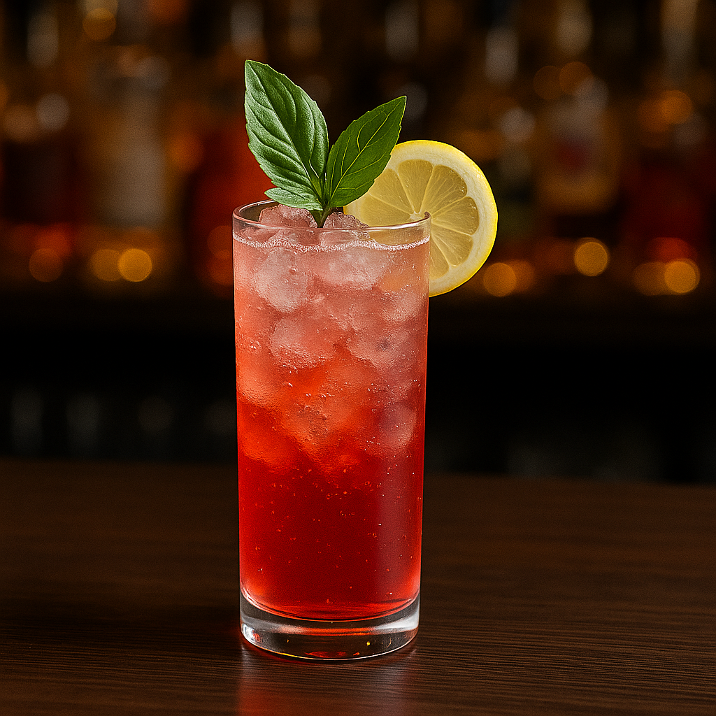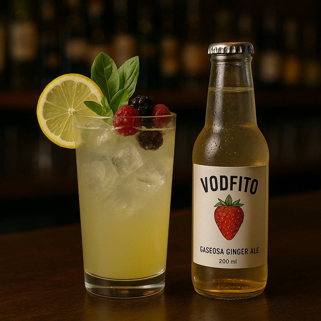 Limón de pica / Syrup simple / Albahaca / Gaseosa ginger ale / Frutos rojos